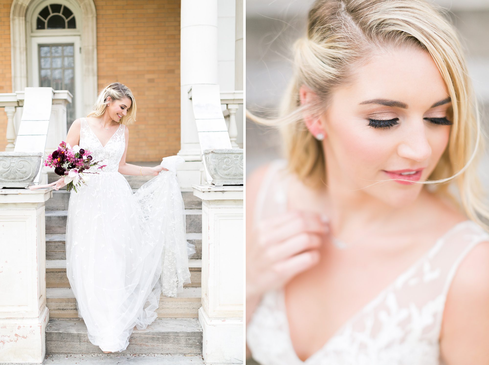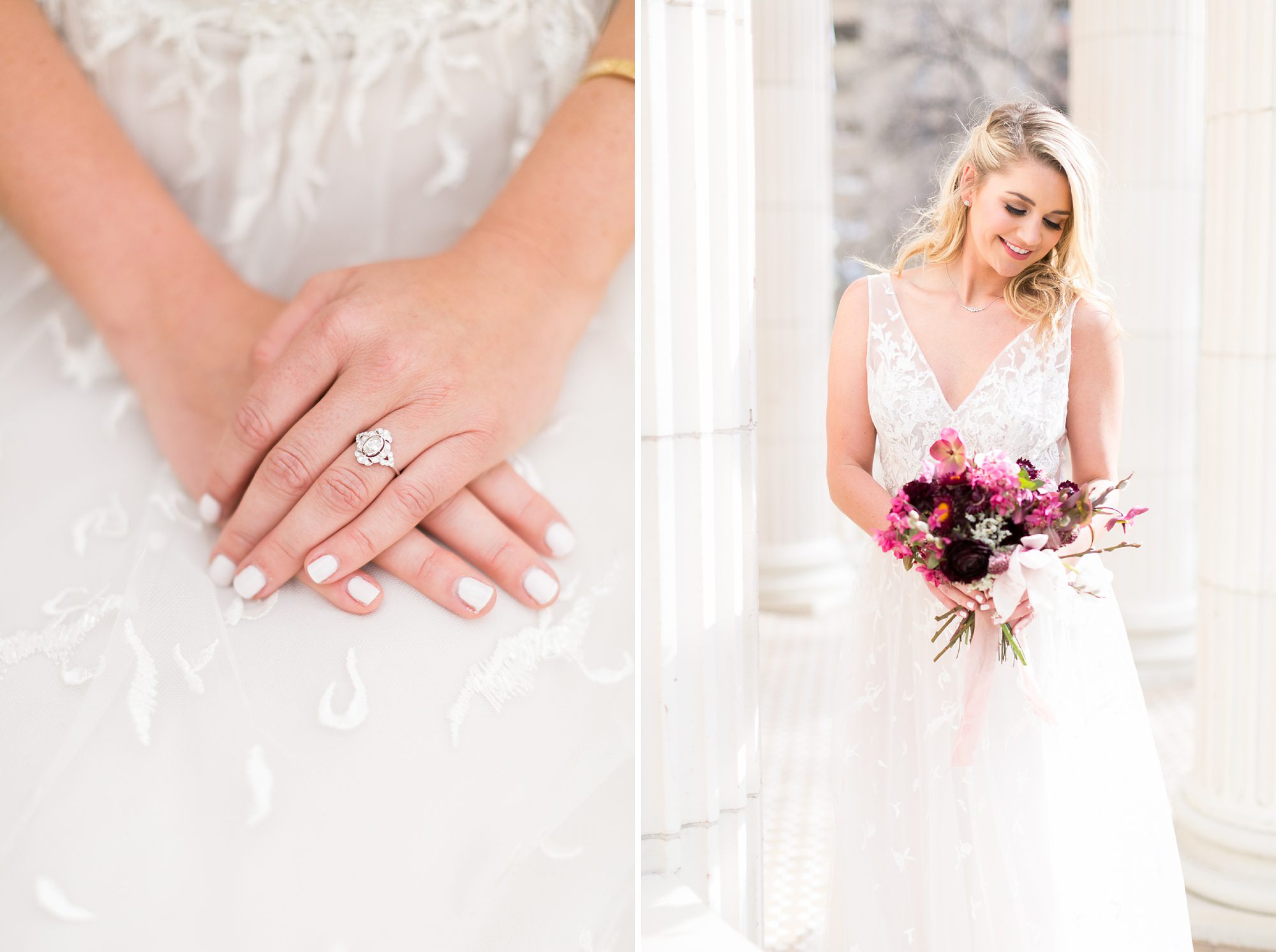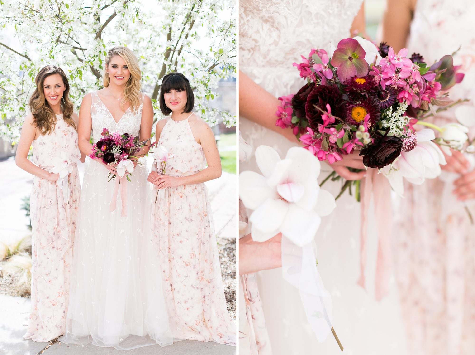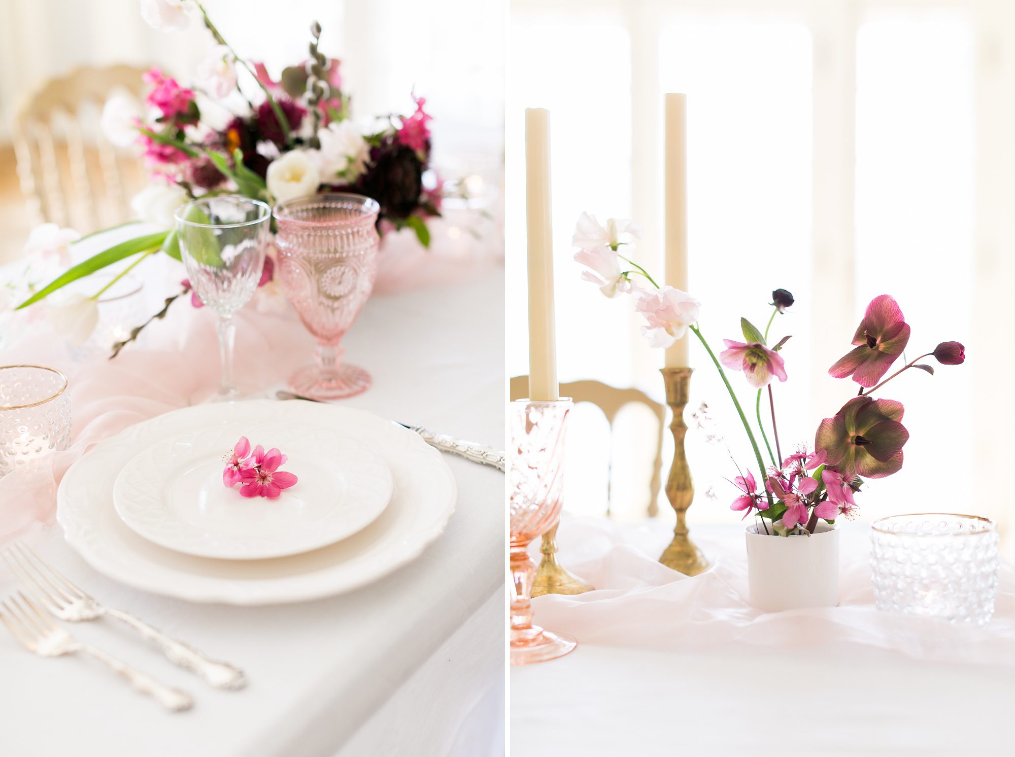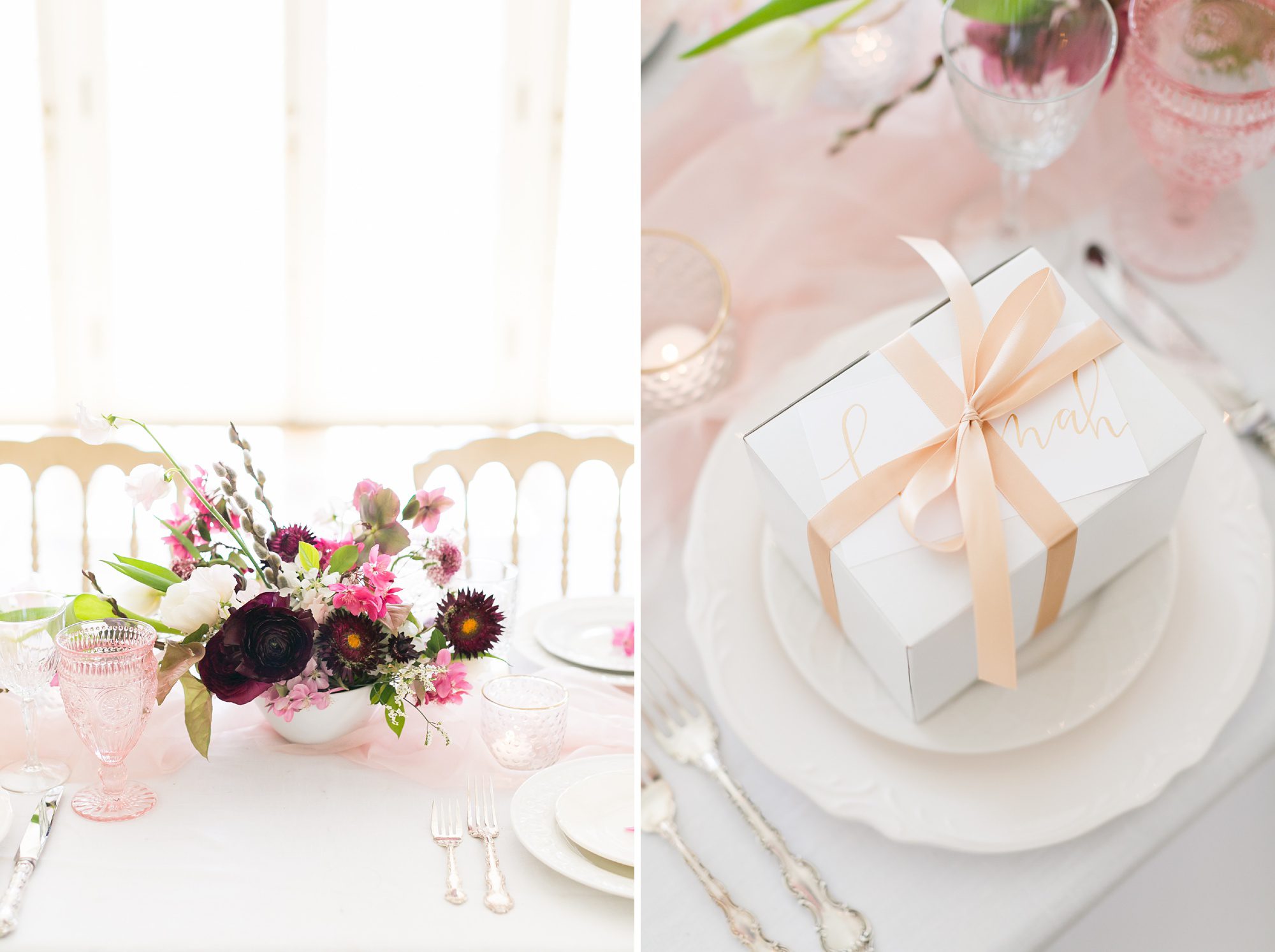 For this photoshoot Plum Sage Flowers arranged the perfect spring bouquets and table arrangements. Never skimp on flowers, they add so much story, dimension, and depth to your wedding day. You may not have the budget to have specific arrangements for the morning of your wedding, but ask your florist if they could include some small bud vases. Or if your florist is already at your venue setting up when you are getting ready, have your bouquets sitting pretty in their vases to add ambiance, and the smell of fresh flowers!