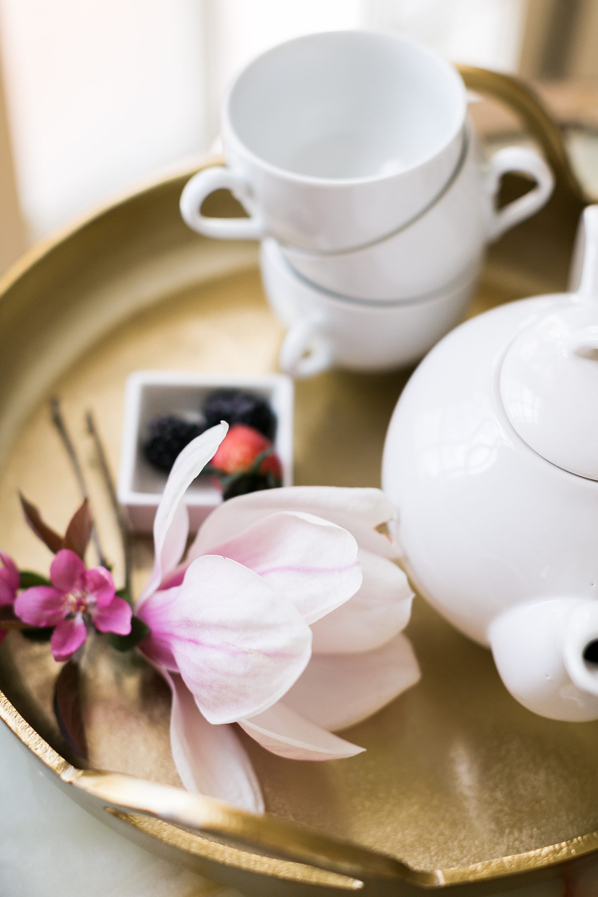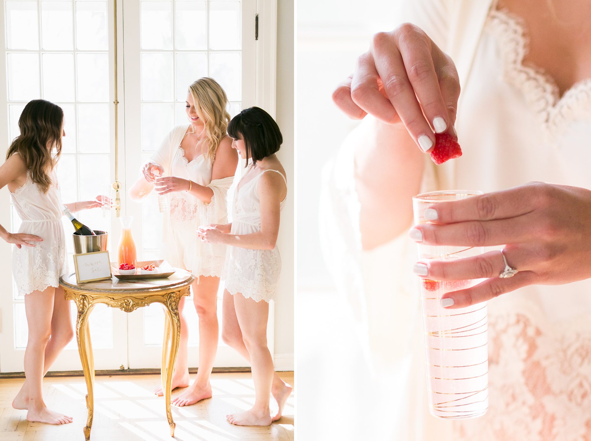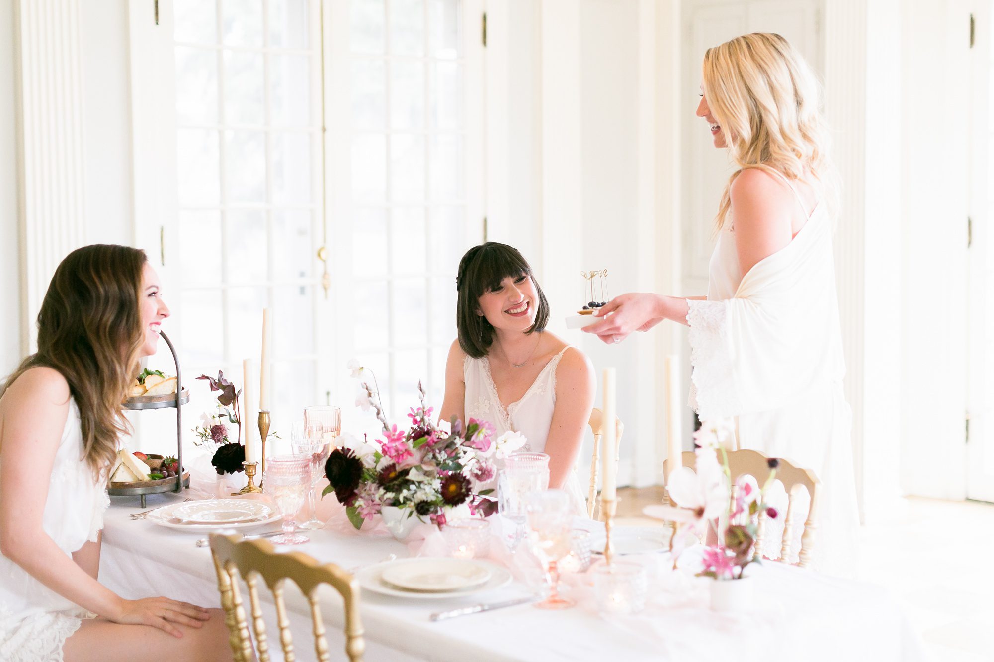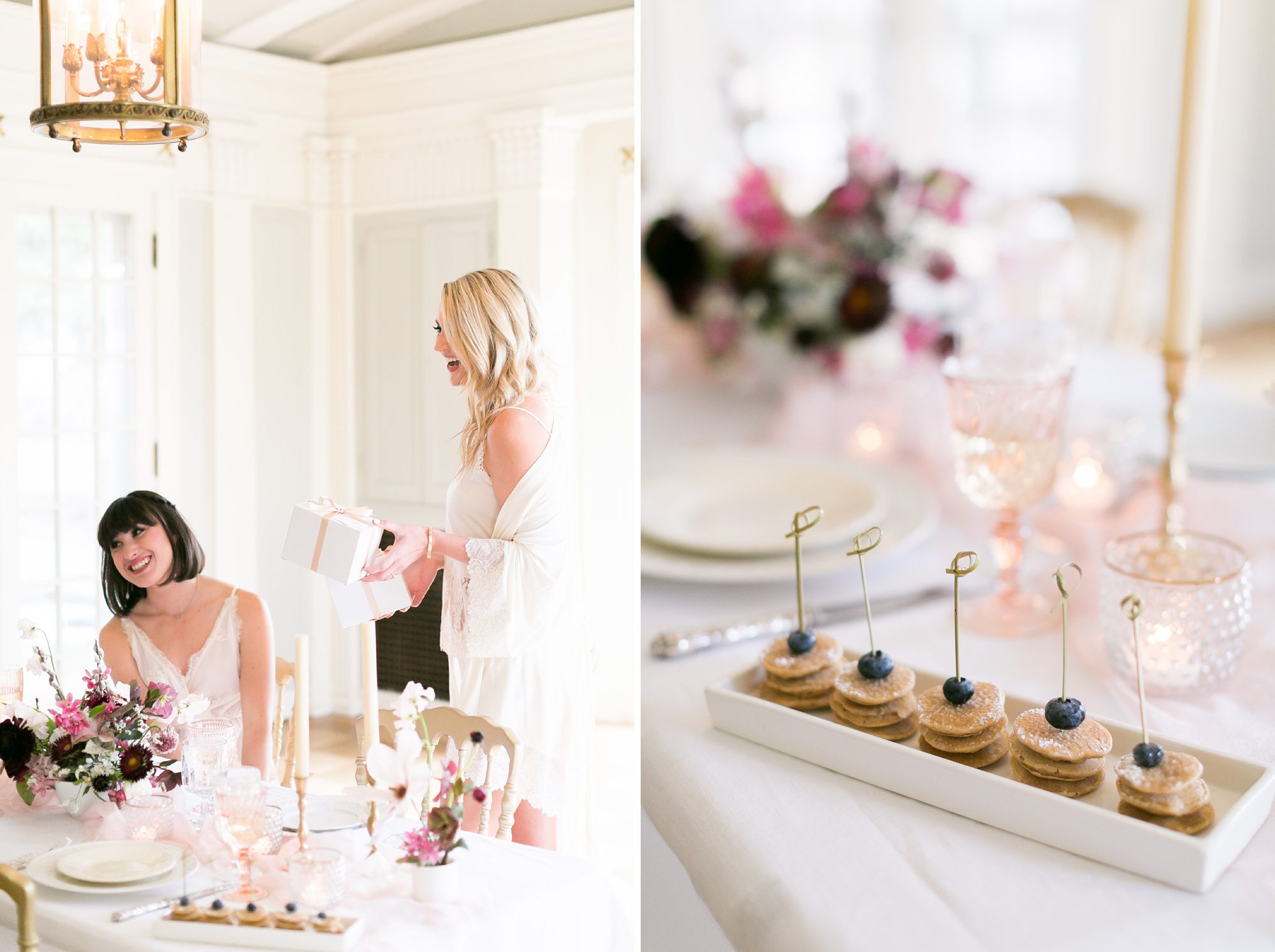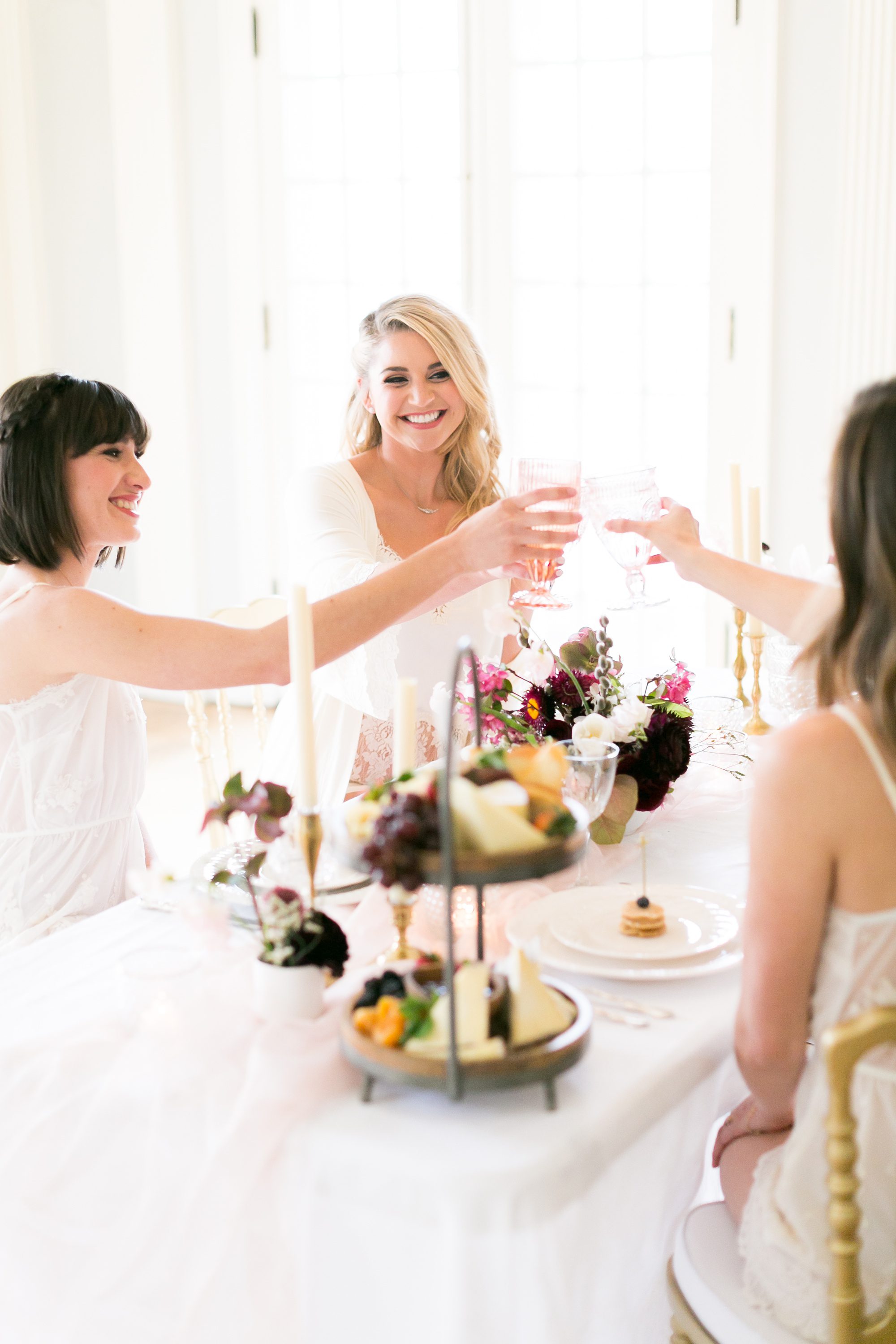 I recommend drawing out some of the special time of your wedding day is to really embrace the morning of your wedding. You are most likely getting ready with all your best girls, and it’s such a fun time of anticipation and excitement. I highly recommend, if your venue will allow it, adding a little extra time onto your morning getting ready process. We wanted to show how to celebrate this morning time with your best girls, by styling a bridesmaids getting ready brunch. You always need some food before all the festivities begin, so why not add a special table setup for your best ladies, after you get your hair and makeup done. It’s such a fun morning of pampering, why not go all out.