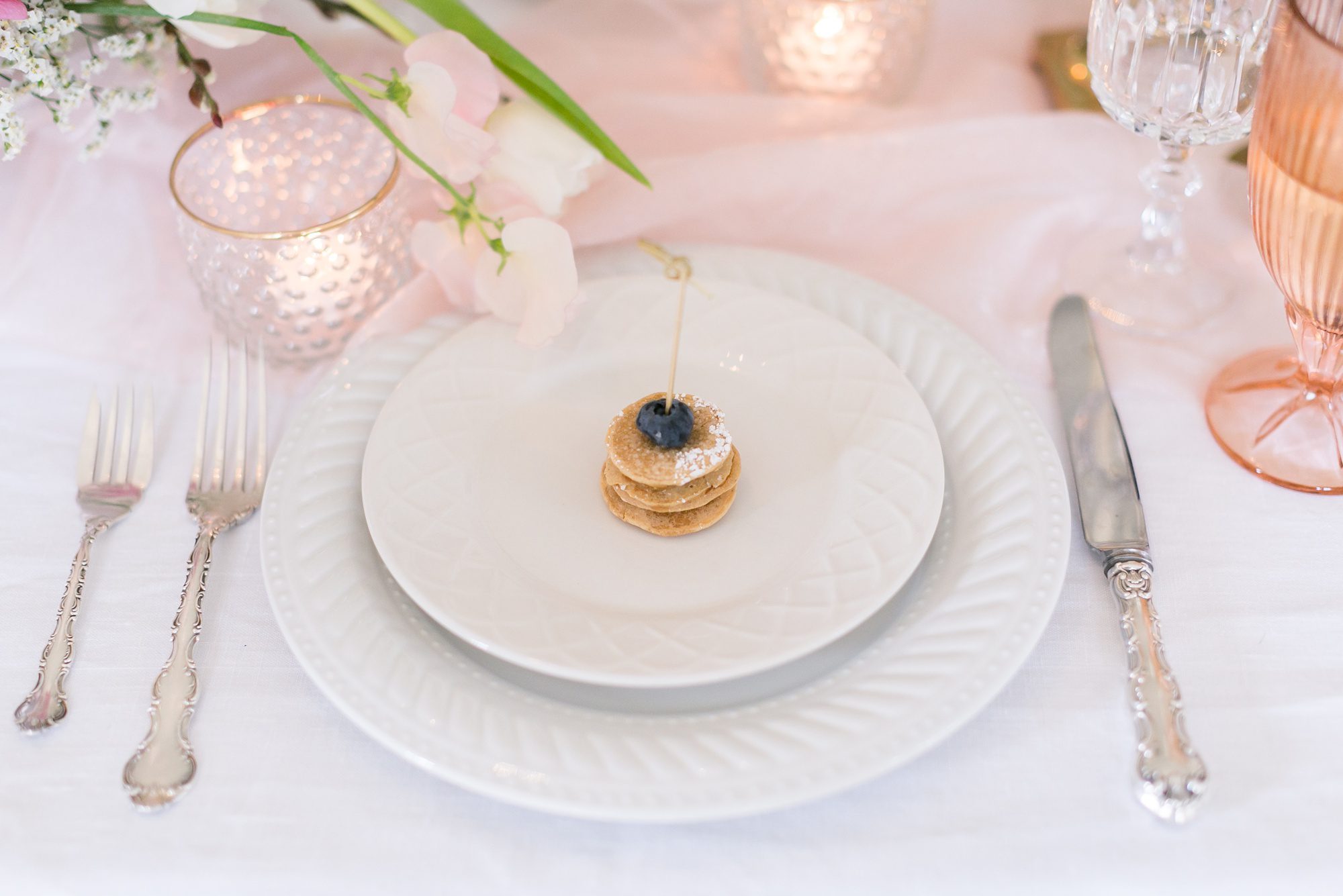 The Every Hostess and I wanted to style a romantic springtime brunch for your ladies, and Grant Humphreys Mansion was the perfect backdrop. Sometimes our wedding day decor tends to fit many different personalities and tastes. But this is a way where you can truly just be girly, and bring out all those fun pinks and ladylike things. We had to have a mimosa bar, and mini-pancakes of course!
