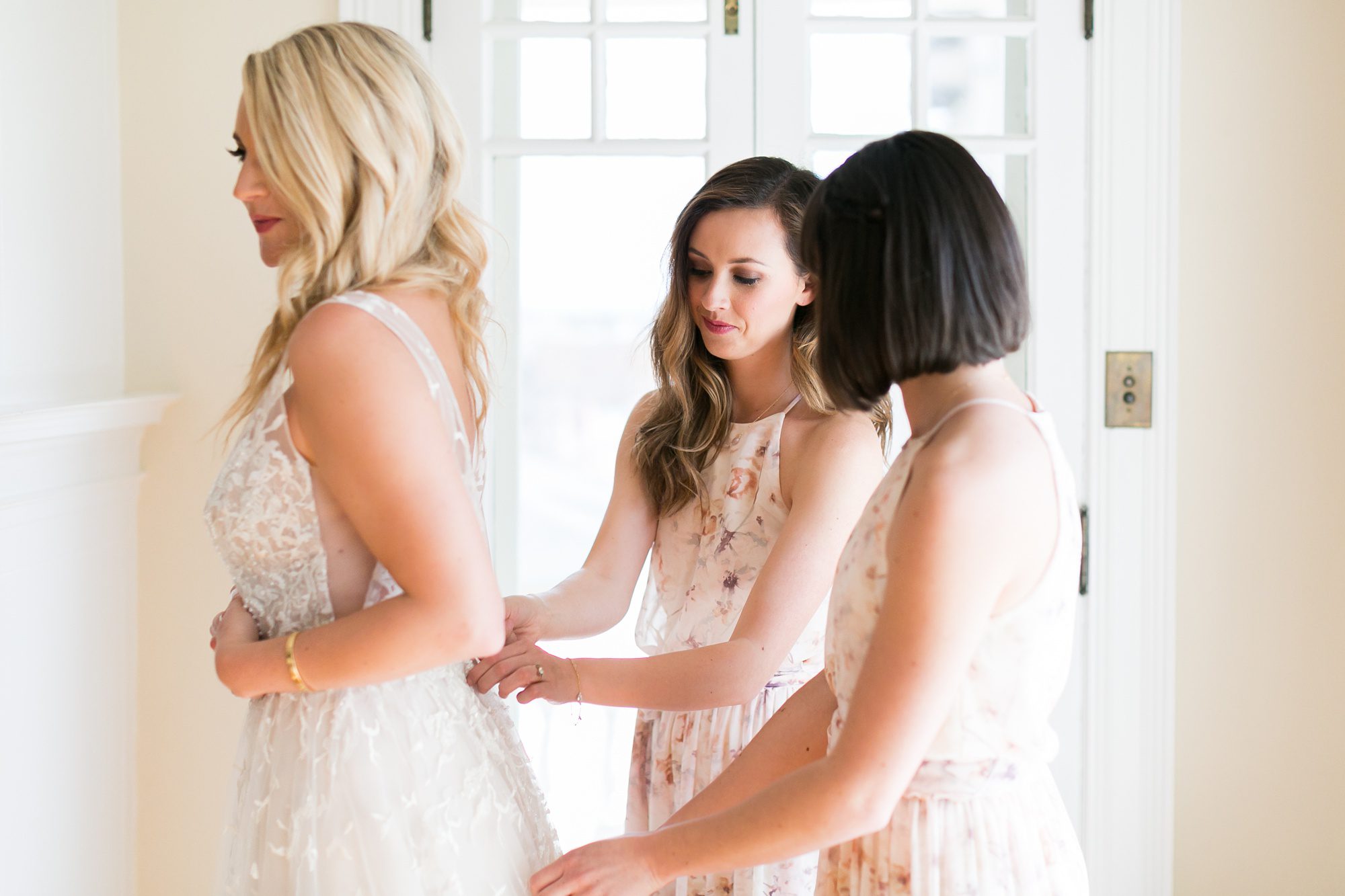 The space is not just important for great photographs, and for your hair and makeup ladies to be able to set up, but it sets the tone for your day. Have some fun, but calming, music playing. So that everyone feels relaxed; that somehow that they have entered a mini-wedding-day-spa! Our fabulous makeup artist Liana Kathryn, also helped plan the specifics of the hair and makeup for the girls. I always highly, highly recommend a professional hair and makeup artist for your wedding day. Not only does it allow you to feel so pampered and pretty, but you want to look your absolute best on your big day! Planning extra time to enjoy hair and makeup is always key. You want your makeup artist to be just that, and be an artist. Giving them time to really pamper you and create your best-ever hair and makeup look is super important for you to feel your best throughout your wedding day!